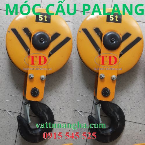 Móc cẩu thay cho palang cầu trục cũng tương tự như một puly có cấu tạo gồm 2 phần: 1 phần móc cẩu được dúc bằng thép, 2 phần có 2 puly quấn cáp.